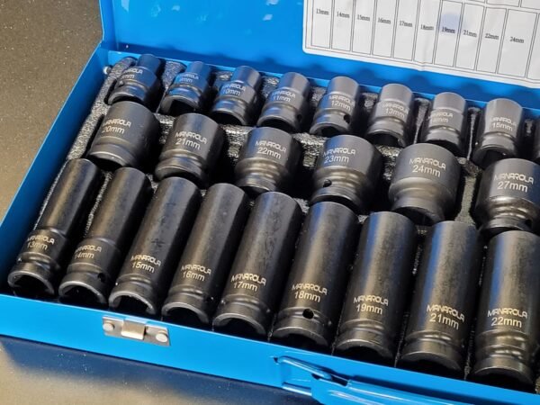 20PCS-1/2″ Impact Sockets: 8, 9, 10, 11, 12, 13, 14, 15, 16, 17, 18, 19, 20, 21, 22, 23, 24, 27, 30, 32mm