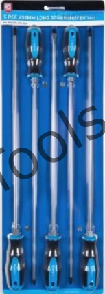 The 5 PCE 450MM Long Screwdriver Set is designed for driving and loosening screws in difficult to reach areas. All of the screwdrivers have a hex bolster on the shaft so that you can add extra torque is required. The screwdriver blade is manufactured from chrome vanadium that is hardened and tempered. The screwdrivers have an ergonomic soft grip handle for user comfort.