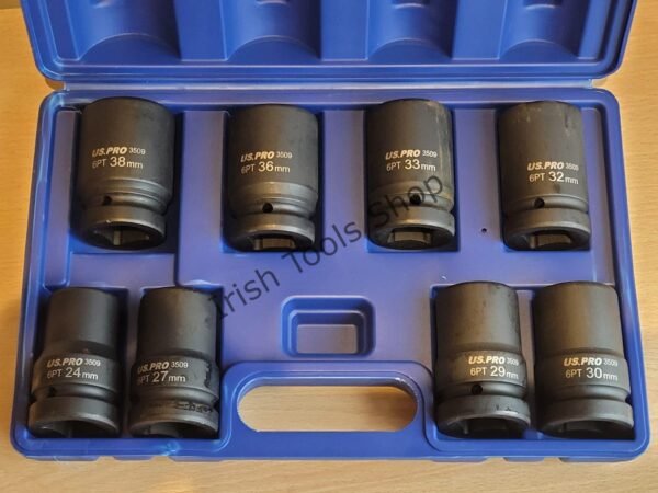 8 Piece 1″ Drive Deep Metric Impact Socket Set 24-38mm