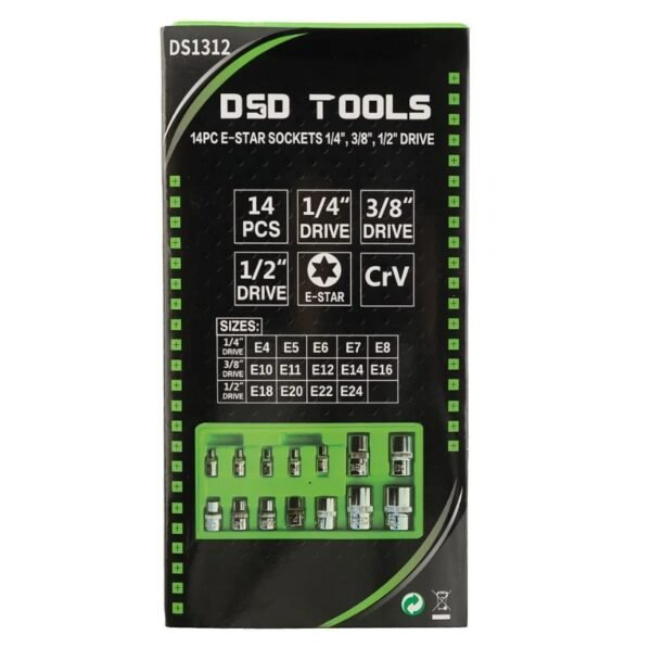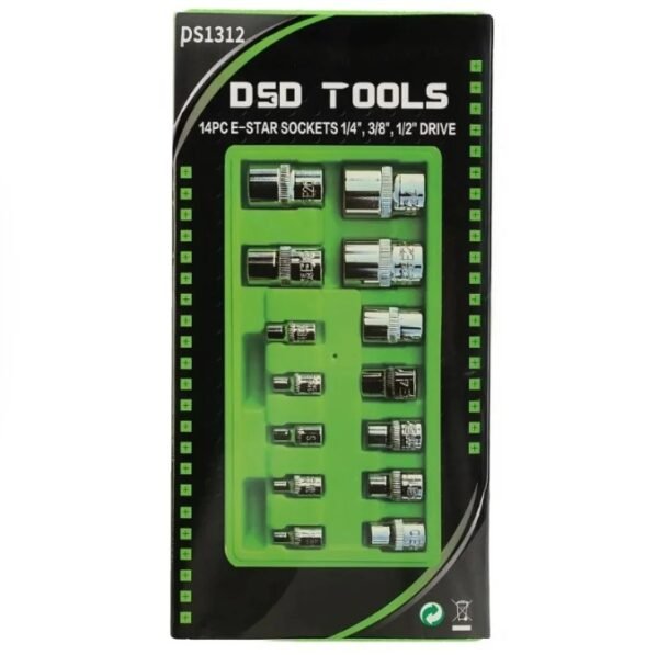 Be the first to review “DSD 14 Piece 1/4″, 3/8″, 1/2″ Drive E-Star Socket Set” Cancel reply