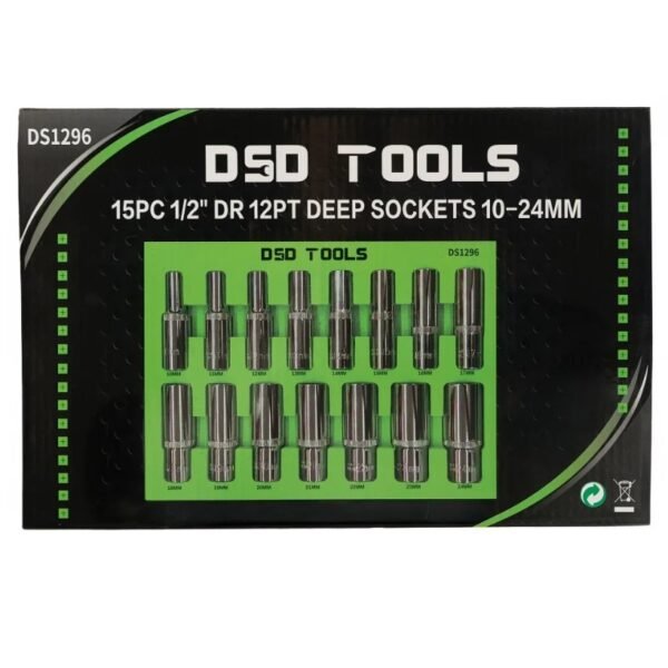 DSD 15 Piece 1/2″ Drive 12 Point Deep Socket Set 10-24mm