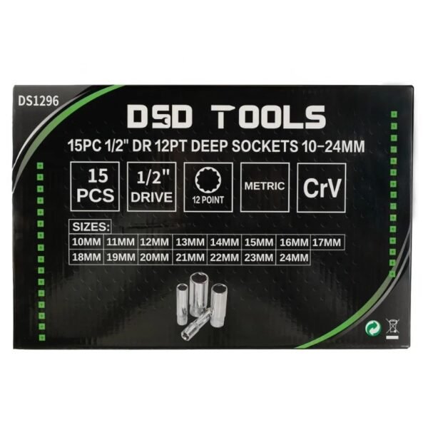Be the first to review “DSD 15 Piece 1/2″ Drive 12 Point Deep Socket Set 10-24mm” Cancel reply