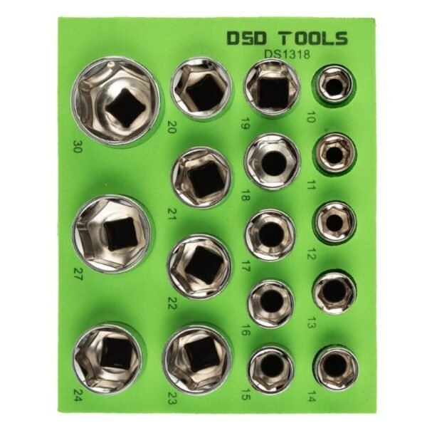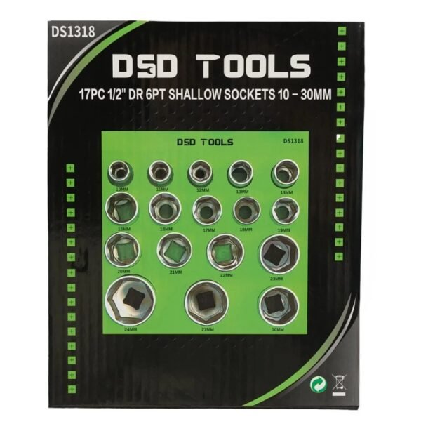 DSD 17 Piece 1/2″ Drive 6 Point Shallow Sockets 10 – 30mm