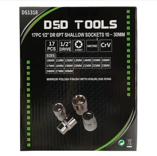 Be the first to review “DSD 17 Piece 1/2″ Drive 6 Point Shallow Sockets 10 – 30mm” Cancel reply