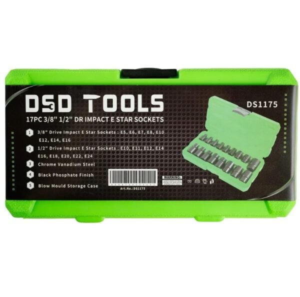 DSD 17 Piece 3/8″ 1/2″ Drive Impact E Star Sockets