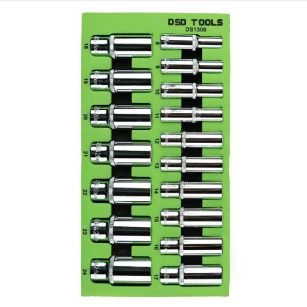 DSD TOOLS 17pc 3/8″ Dr 6Pt Deep Sockets 8 – 24mm DS1306