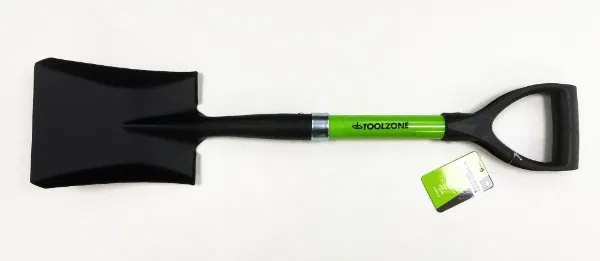 Min 1.6mm thick Handy size shovel with fibreglass handle.
